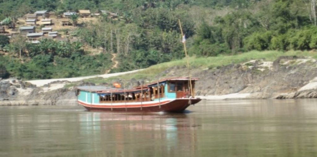 Because of the 30-foot or more seasonal difference in the height of the river in northern Laos between the wettest and driest months, the iconic long shovel-like bows of these traditional Lao craft (see photo) with their steel hulls and wooden superstructures are ideally suited for beaching, regardless of water level.