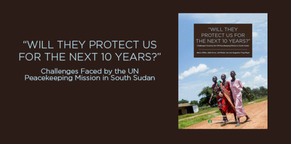 In advance of new recommendations anticipated to be released today by the Secretary-General of the United Nations on the future of the U.N. peacekeeping operation in South Sudan (UNMISS), a new report by the Stimson Center and the Sudd Institute finds that the U.N. Security Council and UNMISS must make hard choices about whom to protect against the threat of widespread violence against civilians. The report, Will They Protect Us for the Next 10 Years?” Challenges Faced by the UN Peacekeeping Mission in South Sudan, focuses on the roles and responsibilities of UNMISS as the international community’s principal intervention force to protect civilians from the physical violence that has marked a year-long civil war in the world’s newest country. The report release also comes amidst discussions at the U.N. to renew the mandate for UNMISS, which is currently set to expire on November 30.