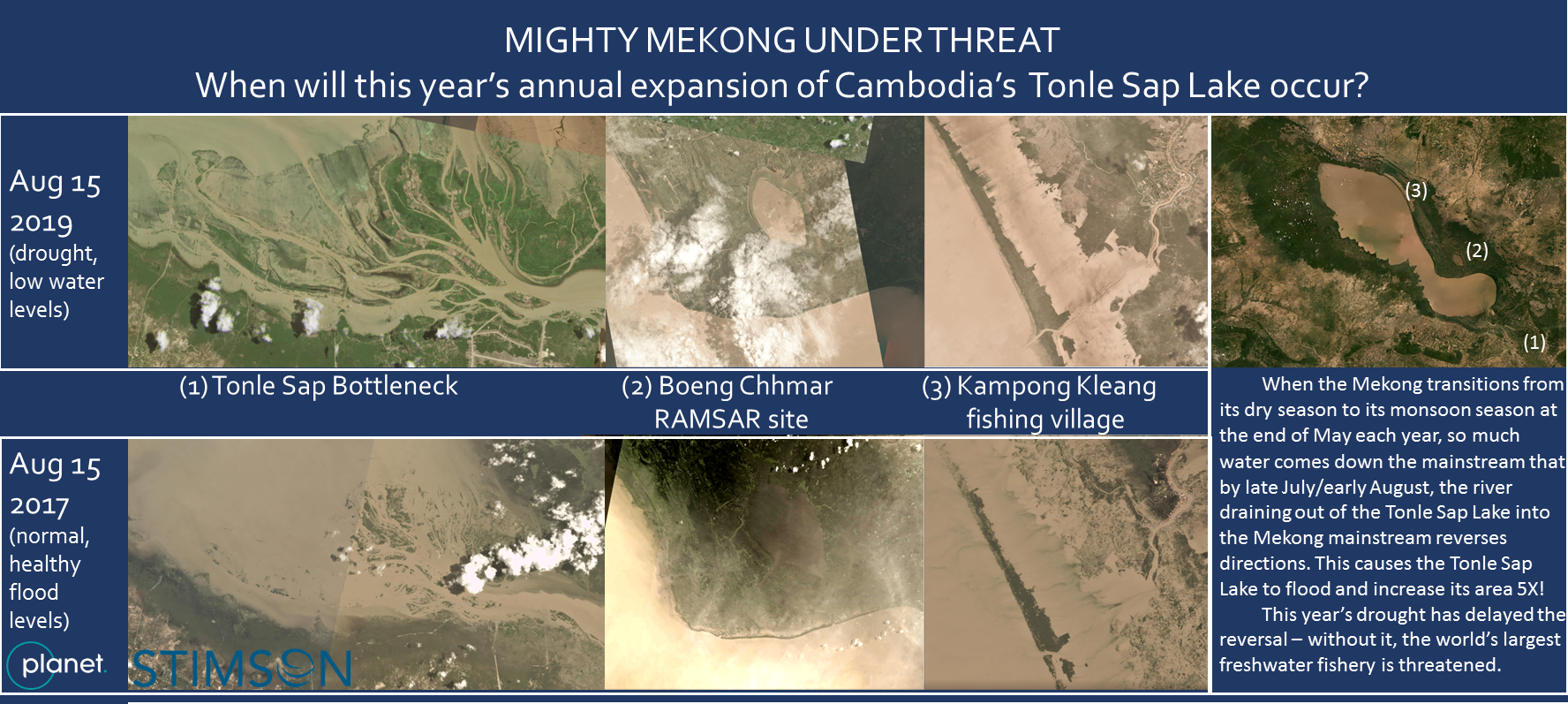 The Tonle Sap Lake must reverse to drive Mekong economies and the tens of millions living in the basin. This year drought severely delays the reversal for millions.