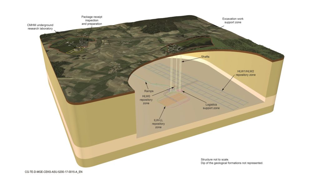 France is one of the few countries which reprocesses spent nuclear fuel (SNF) for potential reuse in light water reactors. As such, the DGR is intended for HLW and long-lived intermediate-level waste (LL-ILW) resulting from reprocessing operations, rather than for SNF.