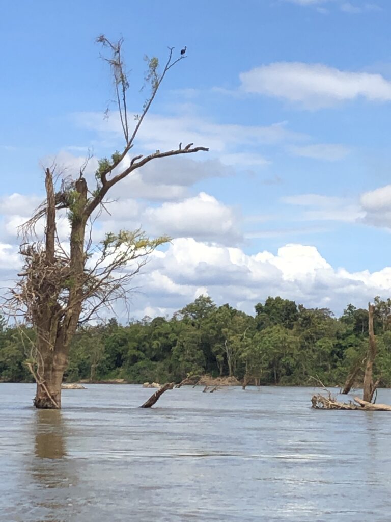 Above: Giant trees which serve as the habitat for bird and fish species in northern Cambodia are dying off because of higher dry season river levels Image: Brian Eyler.