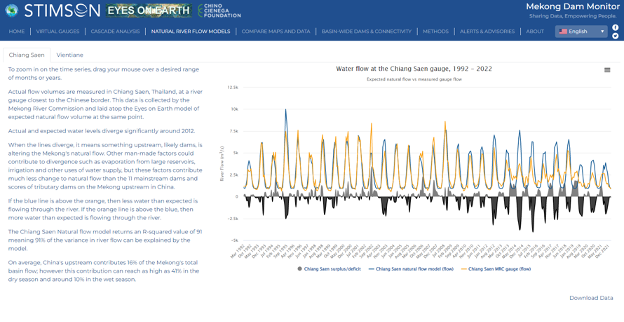 - The page opens to the Natural Flow Model for Chiang Saen, Thailand, but you can use the tabs to select natural flow models for other parts of the river.