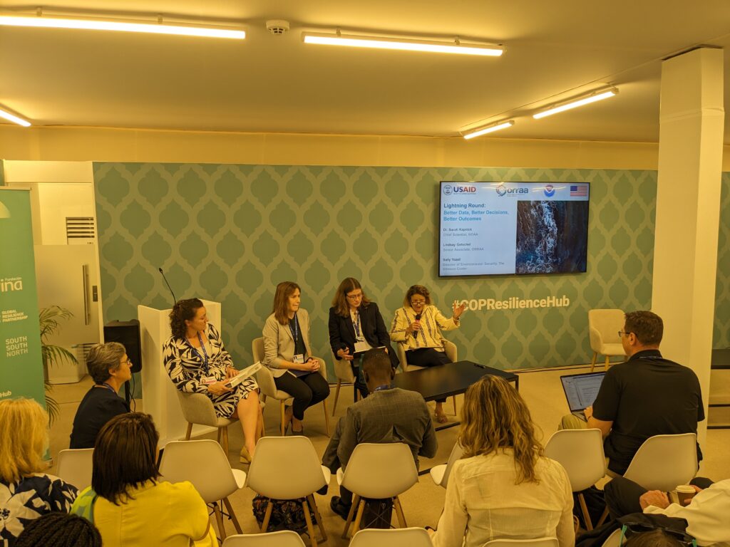 “Investing in Resilient Coastal Communities,” organized by the Ocean Risk and Resilience Action Alliance (ORRAA), USAID, the US Department of State, and NOAA, brought together practitioners across the Global South to discuss innovative projects to finance and implement nature-based solutions. These efforts protect against storm surges, sequester carbon, support biodiversity, and underpin the blue economy. Director Yozell spoke about how our CORVI assessment in Toamasina, Madagascar is providing sorely needed data and information on climate and ocean risks to a community where a lack of this type of data has been a key constraint to implementing resilience plans. The CORVI results will help local decision-makers identify priority projects and access the finance they need to implement them.