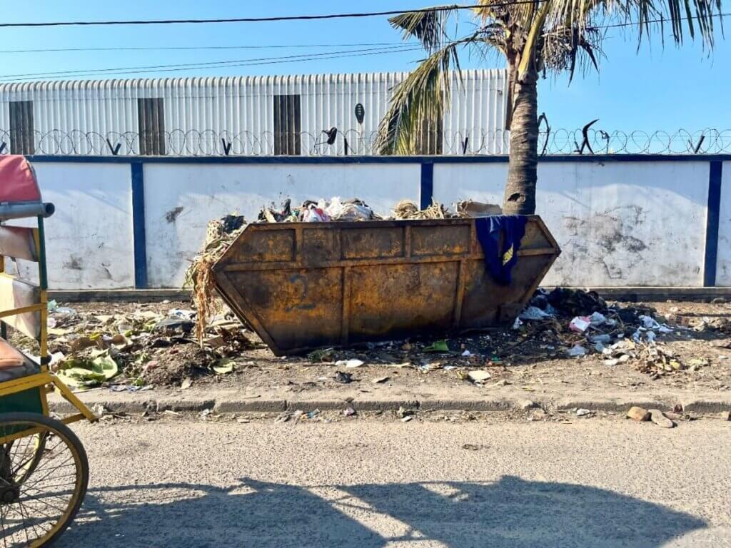 Overflowing solid waste management container, August 2024. Credit: Carolyn Gruber