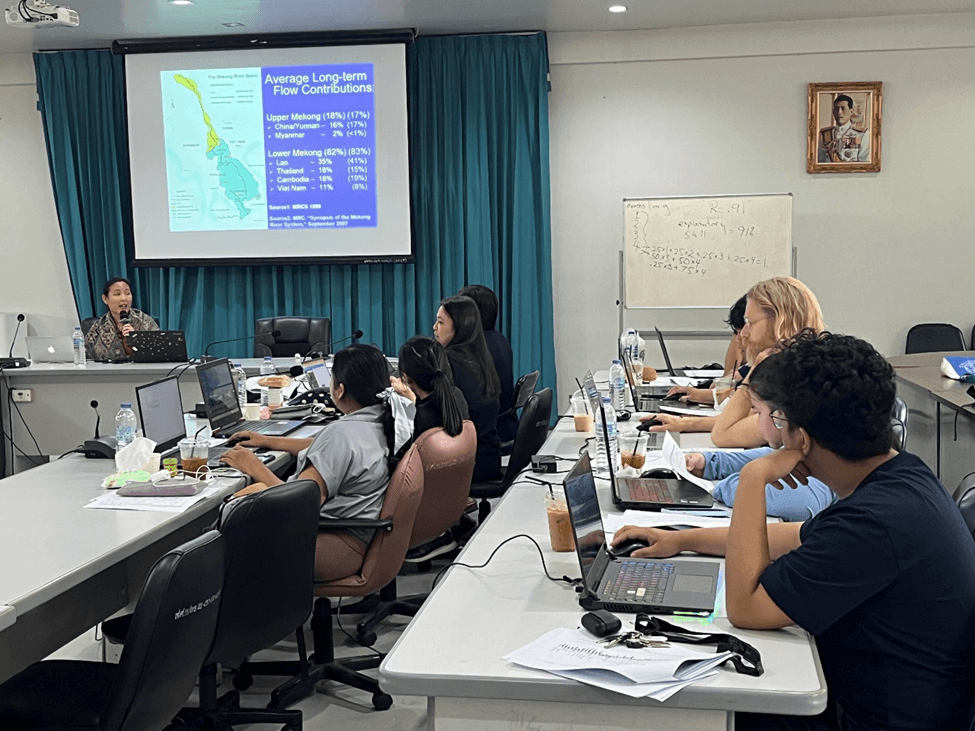 The need to incorporate more data-driven approaches to monitor and track transboundary issues such as river flows and regional haze was the overarching topic of the Mekong Dam Monitor (MDM) team’s recent trip to Thailand, where we led a weeklong workshop to provide technical and capacity-building training in remote sensing and cloud computing with participants from Chiang Mai University, Mae Fah Luang University, and Chulalongkorn University. Hosted at Chiang Mai University, the workshop centered on how we use remote sensing to process and generate near real-time data on surface wetness, river flow, and dam operations and their impacts on the Mekong Basin. Participants also had hands-on experiences in creating their own river flow models and writing their own script codes to run remote sensing analyses.