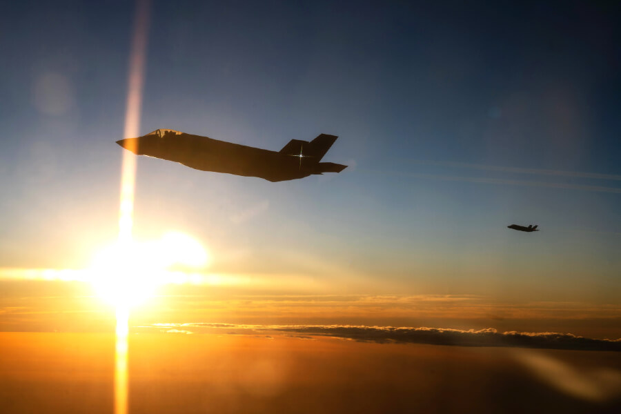 Header image: Two F-35s fly off the coast of northern California during Exercise Bamboo Eagle 25-3 on Aug. 4, 2025. Photo credit: U.S. Air Force photo by Staff Sgt. Tryphena Mayhugh via DVIDS; Public Domain.