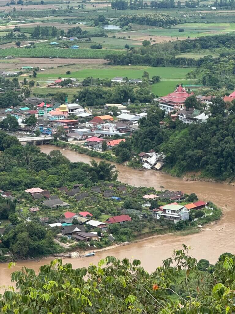 Since 2022, Mekong activists and civil society groups have noted that flooding along the Sai-Ruak River is increasing in severity and frequency. During our fieldwork, we learned the Sai-Ruak floods were unique for being much muddier and sediment laden than previous floods. Additionally, the sediment was “stickier” in quality compared to sediment deposited during previous flood events. In 2024, flooding led to the discovery of contamination of water and sediment in these rivers from upstream rare earth and gold mines. In late August 2024, the Kok and the Sai-Ruak Rivers flooded severely from a passing storm. Just three weeks later on September 11, 2024, the Kok and Sai Rivers flooded again as Typhoon Yagi passed over mainland Southeast Asia. These back-to-back flood events sent thick mud far and wide across the floodplains and caused significant damage in cities and towns in Chiang Mai and Chiang Rai Provinces. In 2025, the Kok and the Sai-Ruak Rivers have already flooded four times.