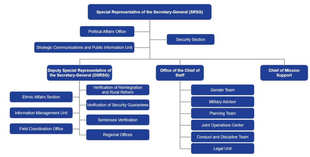 Organizational Chart for the Verification Mission41Adapted from the Verification Mission’s “UN Verification Mission Organigramme (simple),” September 2025.