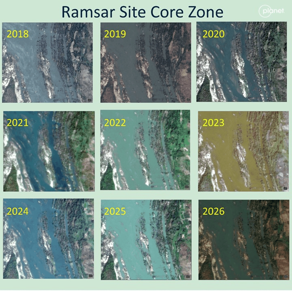 Planet Labs Planetscope imagery for the Ramsar Site Core Zone area from 2018 to 2026.