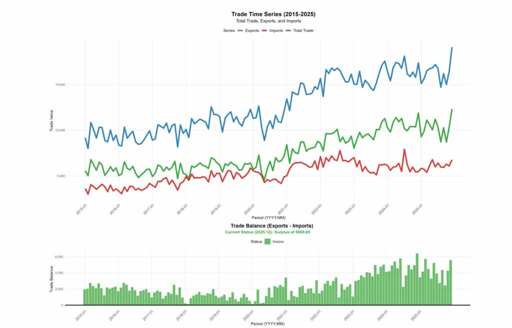 Figure 1. Monthly South Korean Trade with the U.S., 2015.01 – 2025.12 (in $ Million)