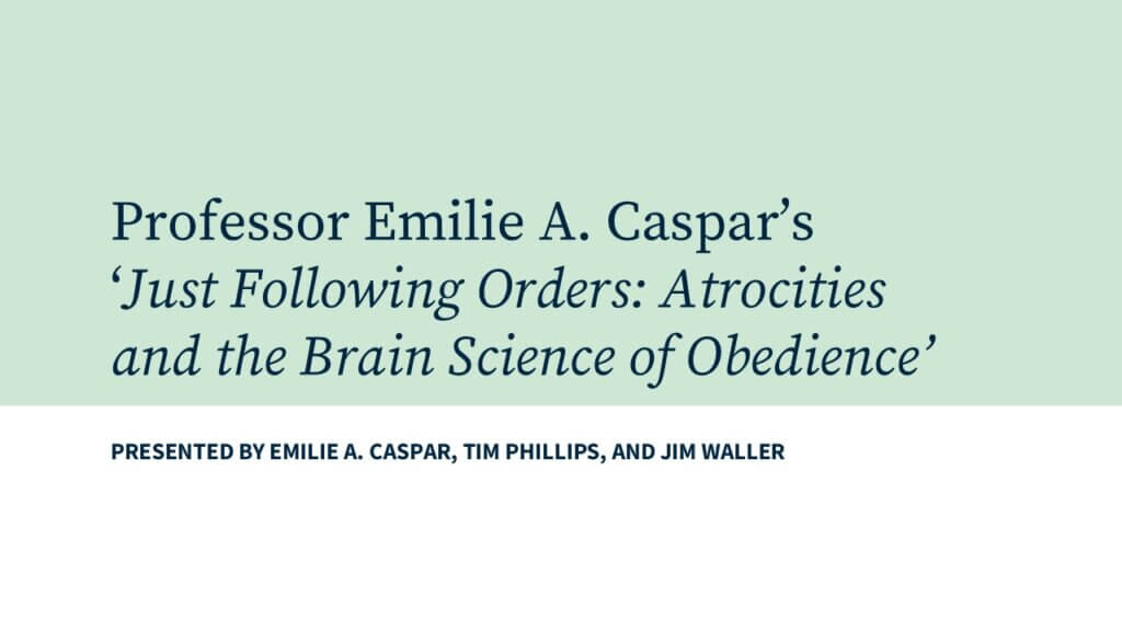 Professor Emilie A. Caspar’s “Just Following Orders: Atrocities and the Brain Science of Obedience”