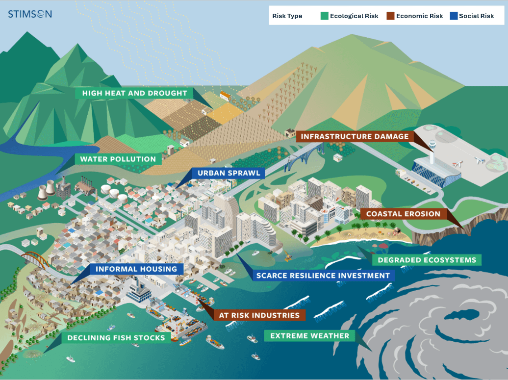 These interconnected issues have profound consequences for the social and political health of coastal cities and island states. Climate-related risks undermine the economic, food, and environmental security of cities, have the potential to increase tension and unrest, and hamper efforts to build resilience.